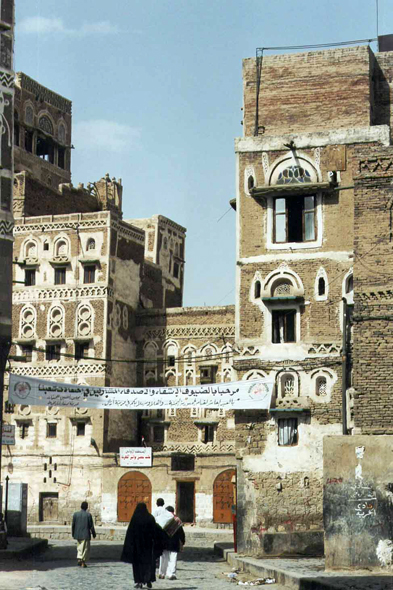 Sanaa - 3,5 millions d'habitants, est située à 2350 mètres d'altitude est la capitale du Yémen. Elle abrite l'un des plus grands musées en plein air du monde. Isolée pendant 1500 ans, visitée seulement par une poignée d'Européens, cette ville légendaire fit brutalement son entrée dans le monde moderne dans la seconde moitié du XXème siècle. La ville ancienne se dresse fièrement au milieu de quartiers modernes balayés par les nuages de poussière que soulèvent les voitures.